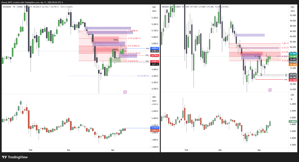 Metals – I don’t see anything on Daily or Higher TF. The speed of the grind higher looks like a retracement … HG is more bullish than the others.