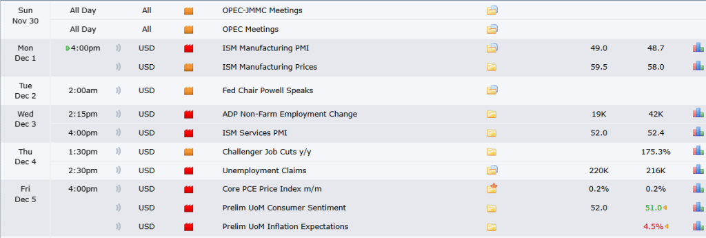The week is packed with important news events. Last 2 days have been very quiet due to Thanksgiving holidays. We might some movement this week.
