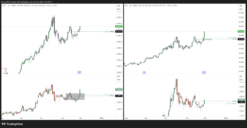 Metals – SI is pushing up strongly. All other metals are weeker. GC might catch up ? I do not expect SI to retrace a lot before going hiher again.