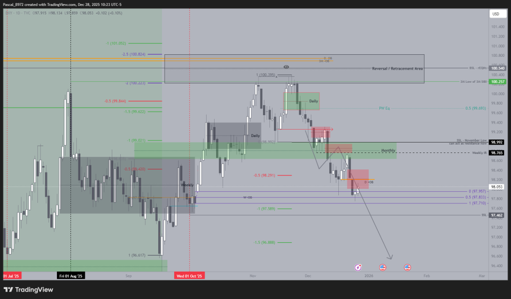 DXY – Still Bearish on DXY however price can go up or consolidate to print the end of the monthly candle