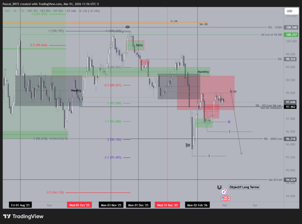 On HTF Monthyl marked a swing low but also a bearish Monthly OB. On monthly I can see price go lower on monthly. Daily is in a range. We need to wait to see where price want to go.