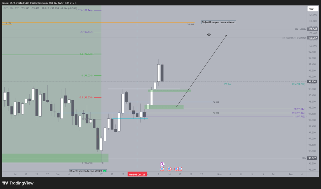 DXY – We bullish on weekly and I expect another bullish week on a technical point of view. I still keep in mind what i’ve id earlier and I’ll be carefull with PA and New the coming week as I would not be surpise by a « Friday Reversal » Weekly profile. Objective is still 100.257.
