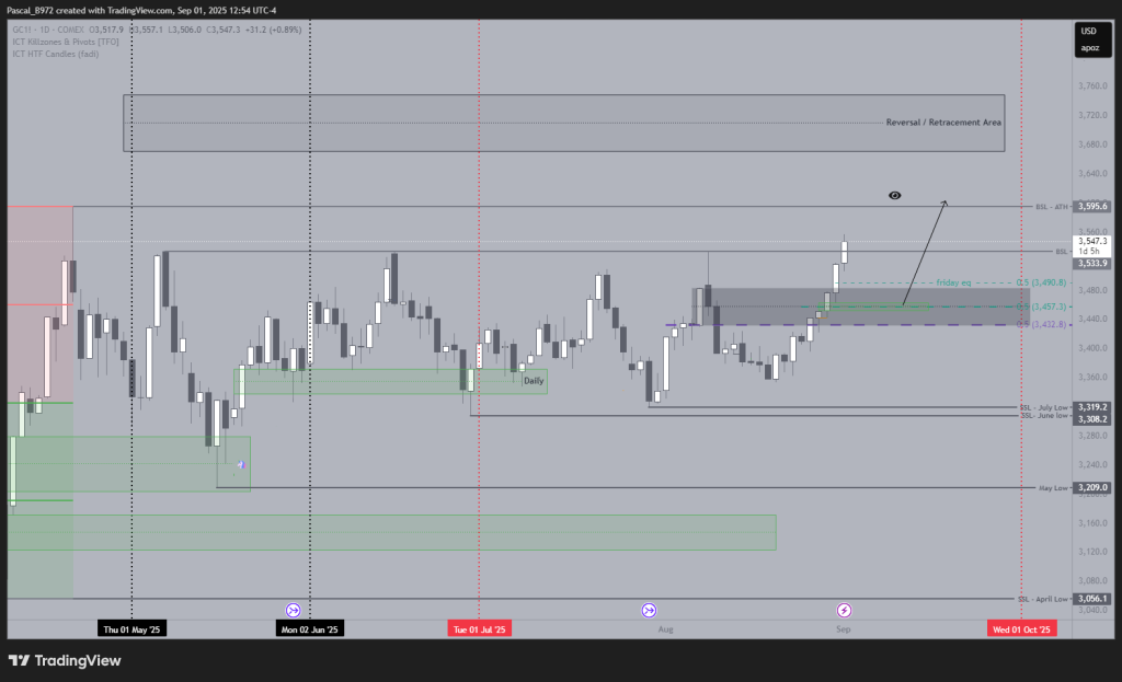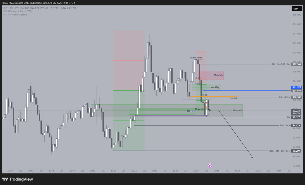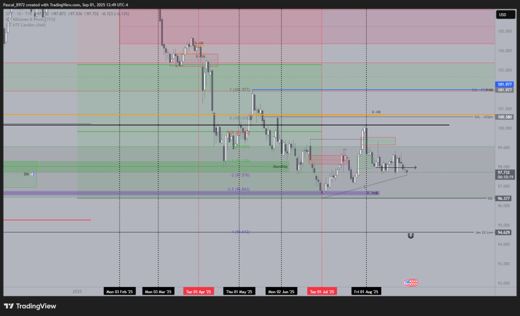 I still see DXY bearish bt ca not ignore a potential run higher to start september in a OHLC scenario.