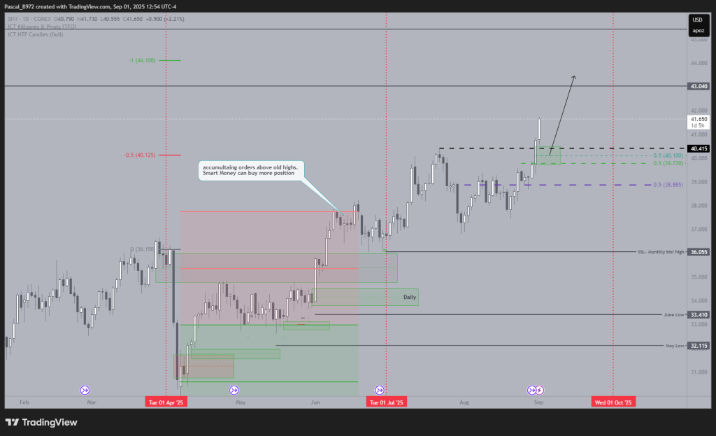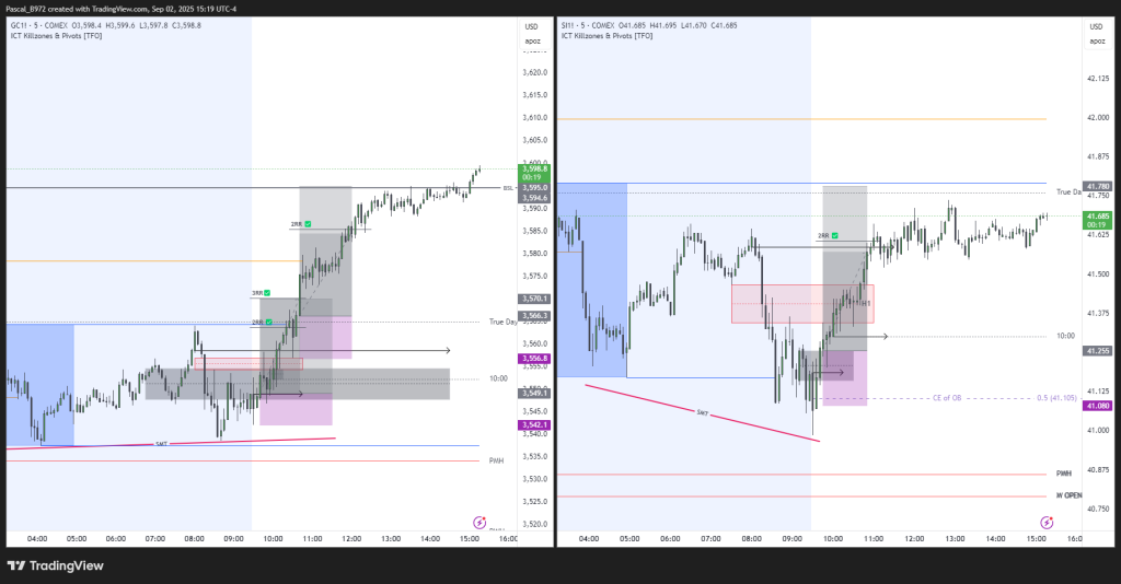 Analysis on GC and SI. PA was good. I decided to trade ZW instead because I notice that we probably in a quarterly shift. Als Price action on HTF Monthly ad Daily align with seasonality higher until mid-October.